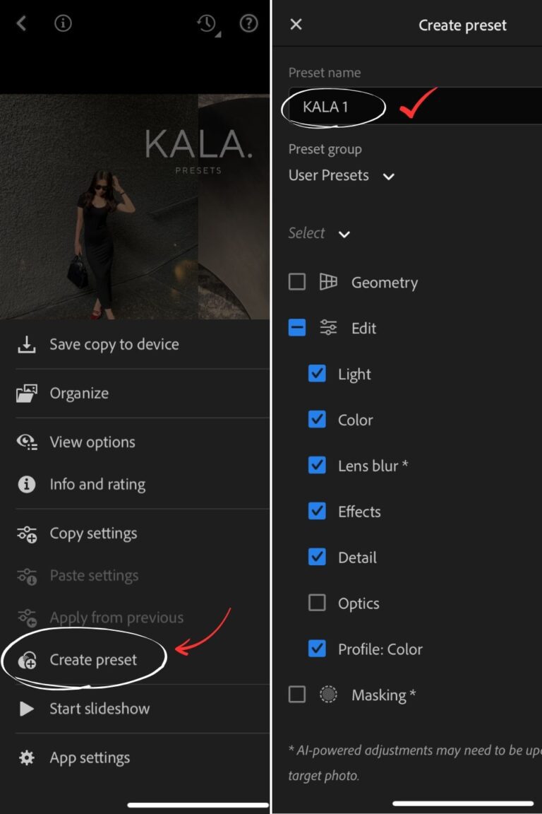 Create preset, then name it and you’re done!
