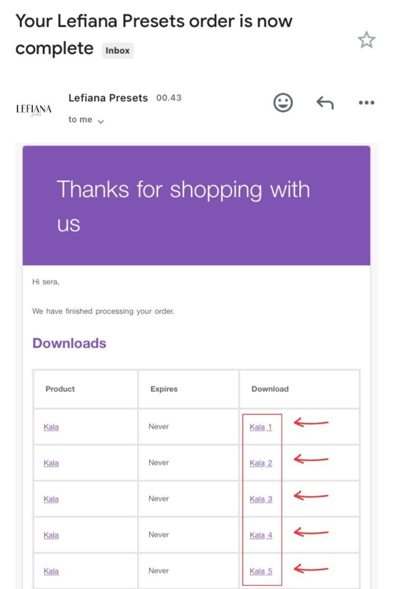 After payment, you can download the presets on the checkout page.