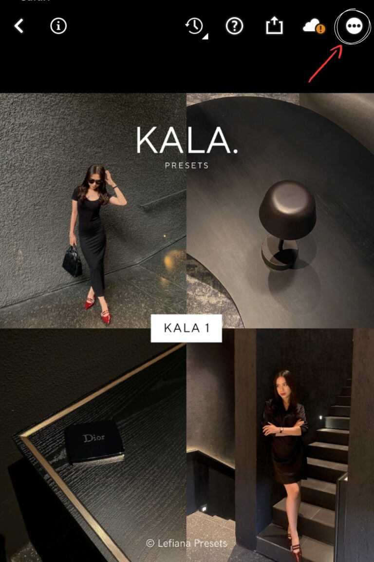 Open the lightroom app and select the DNG file photos with the preset. Tap “⋯” on the upper right corner.